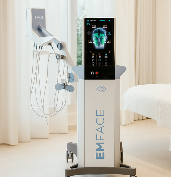 Emface visits take about 20 to 30 minutes. We cleanse and map the face, then deliver gentle radiofrequency with light HIFES muscle pulses. It feels warm and comfortable. Most plans include four sessions scheduled one week apart. You may see typical slight pinkness/redness that fades quickly, and you can return to your routine right away.